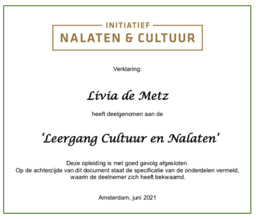 Wat ik vlak voor de zomer ook heb afgerond is de leergang Nalaten aan Cultuur.